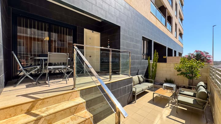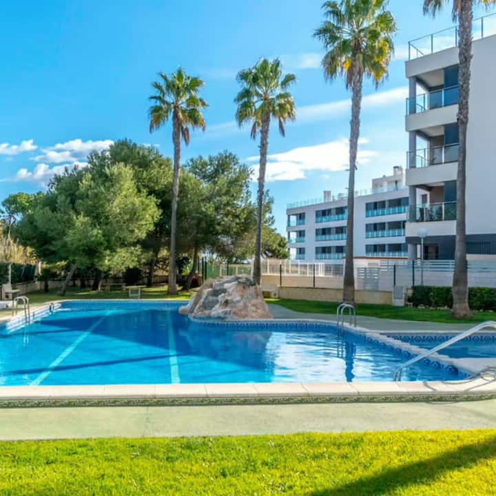 อพาร์ทเมนท์ทันสมัยและสว่างตั้งอยู่ในที่อยู่อาศัยที่ปลอดภัยของไพเนดาบีช III ในลา มาตา (ตอร์เรเวียฆา)
