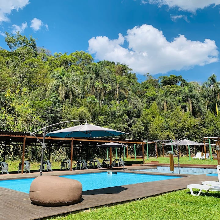 เพลิดเพลินกับสระว่ายน้ำ🏊 อ่างน้ำร้อน💦 พื้นที่เปลญวน