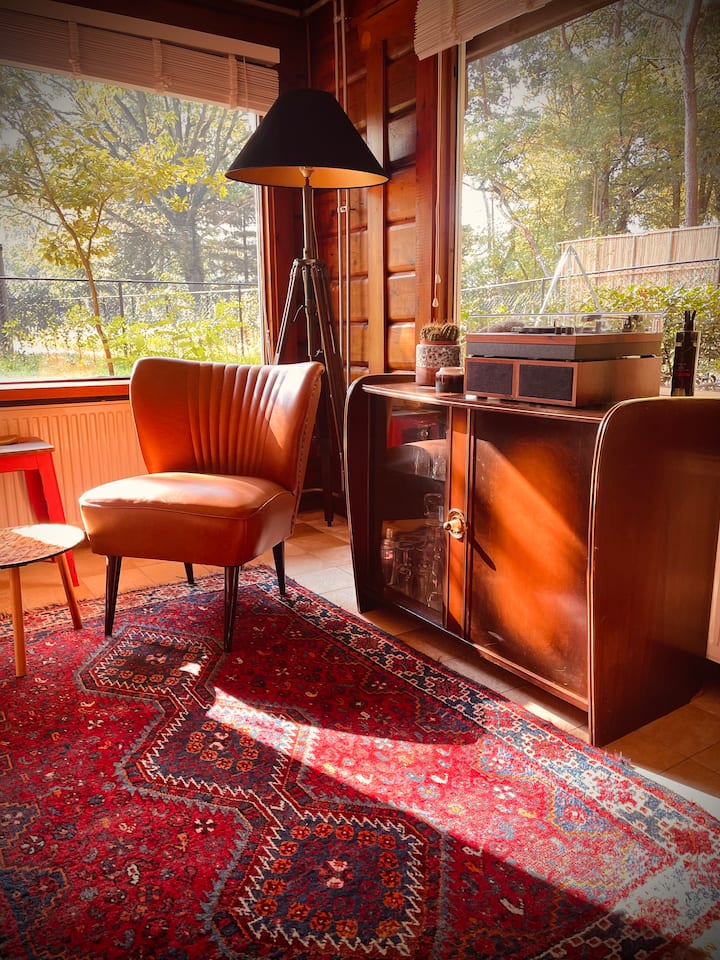 บ้านไม้สไตล์วินเทจที่มีเสน่ห์พร้อมสวนส่วนตัวในป่า