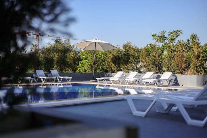 นี่เป็นหนึ่งในที่พักไม่กี่แห่งของย่านนี้ที่มีสระว่ายน้ำ