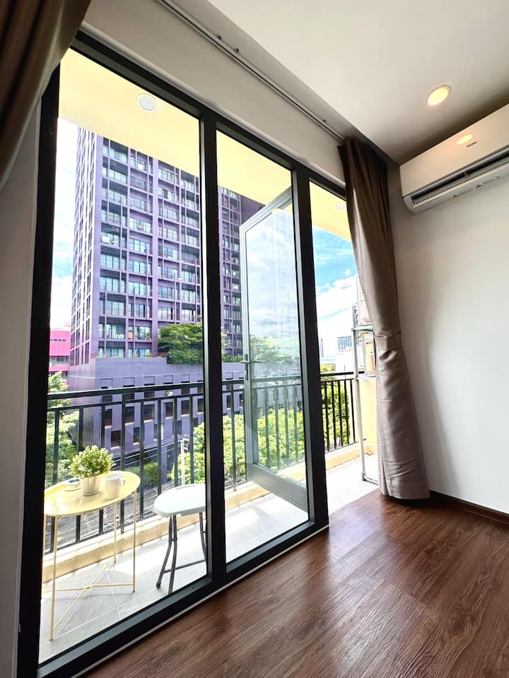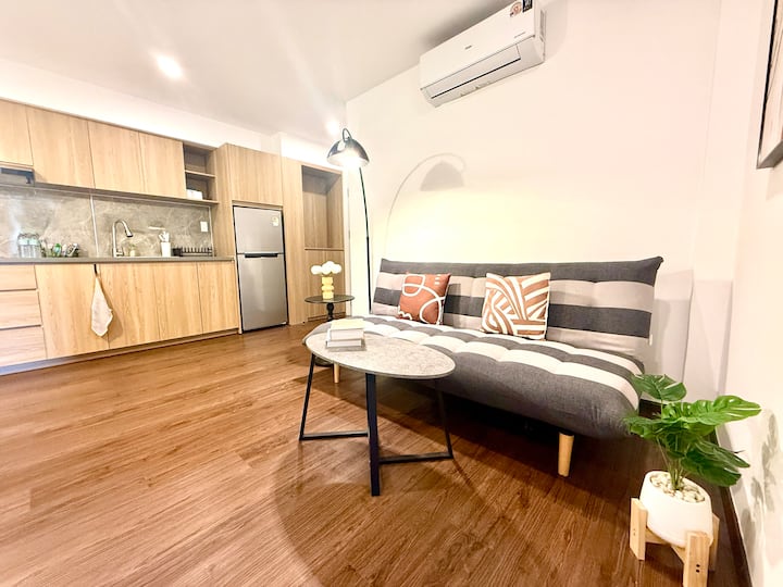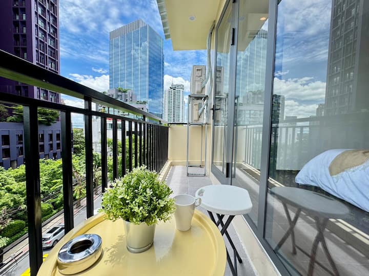 ห้องนอน 1 ห้องทันสมัยใกล้เอกมัยและไนท์ไลฟ์