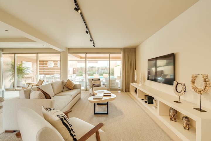 เพลิดเพลินกับวิลล่าหรูปี 2025 ที่ปรับปรุงใหม่ทั้งหมดใน Herdade dos Salgados สุดพิเศษ ห่างจากชายหาดและสนามกอล์ฟเพียงไม่กี่นาที มีพื้นที่ ความสะดวกสบาย และความเป็นส่วนตัวสำหรับกลุ่มใหญ่