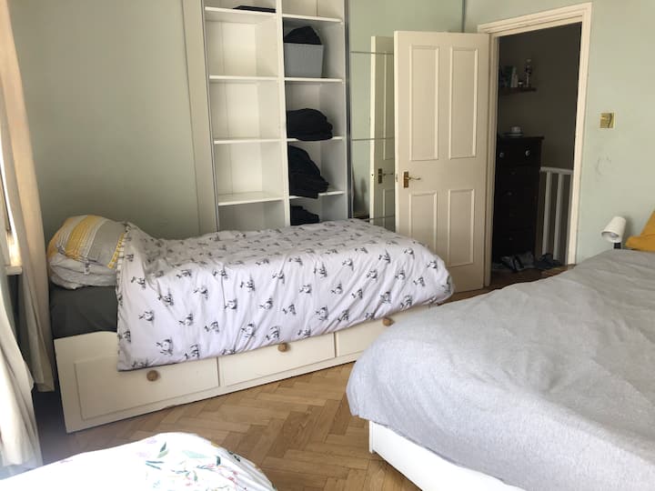 พักกับครอบครัวชาวอังกฤษ (เด็ก 2 คน แมวที่เป็นมิตร 5 ตัว) ในที่พักที่มีคนอยู่ ปลอดภัย และอบอุ่น ห้องพักที่อบอุ่นพร้อมเตียงคิงไซส์ เตียงเดี่ยว และเตียงโซฟา ห้องน้ำรวม พื้นที่ตู้เย็น การขนส่งที่ยอดเยี่ยม 127 ครั้ง 99 รีวิว – ส่วนใหญ่ 5 ดาว (คนแปลกหน้าทำให้เราตก!) เราไม่ได้มีไว้สำหรับนักเดินทางที่มีอาการวิตกกังวล – นี่คือบ้านจริงๆ ไม่ใช่โรงแรม เราชอบให้เช่าที่พักแก่ครอบครัว และลูกๆ ของเราก็ยินดีเล่นเสมอ เรายินดีช่วยวางแผนการเดินทางของคุณและแนะนำกิจกรรมแปลกใหม่และแหวกแนวในลอนดอนและที่อื่นๆ