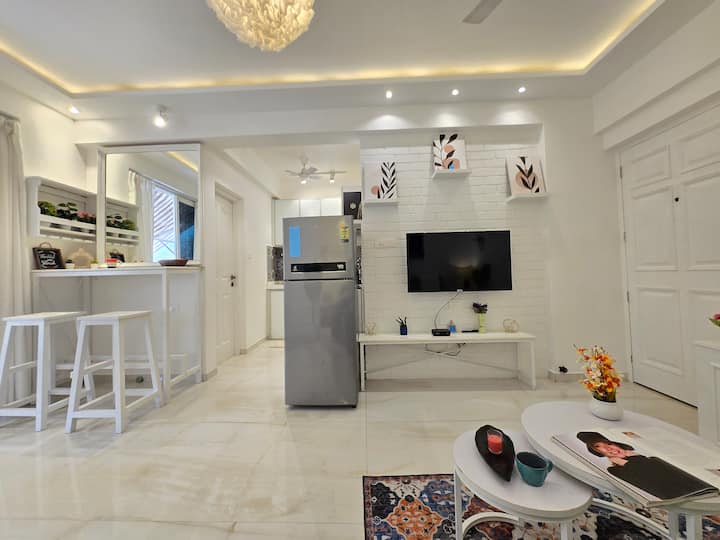 ♥ กลับมาที่ห้องชั้น 1BHK ของคุณที่มีการตกแต่งภายในอย่างหรูหรา แสงสว่างนุ่มนวล และบรรยากาศที่สร้างขึ้นเพื่อการจิบช้าๆ และการมองแอบมอง