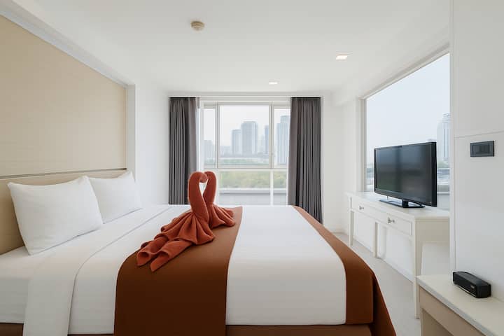 ลด 50% | ทำความสะอาด+เปลี่ยนผ้าปูที่นอน | เตียงคิงไซส์ | 24 ชม.