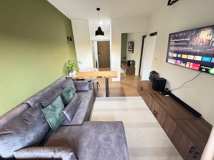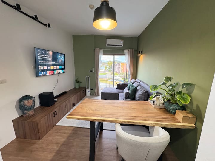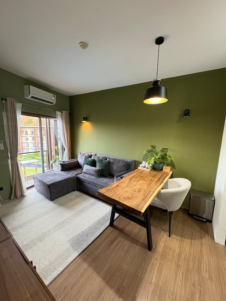 ห้องนอน 1 ห้องพร้อมห้องนั่งเล่นที่อบอุ่น