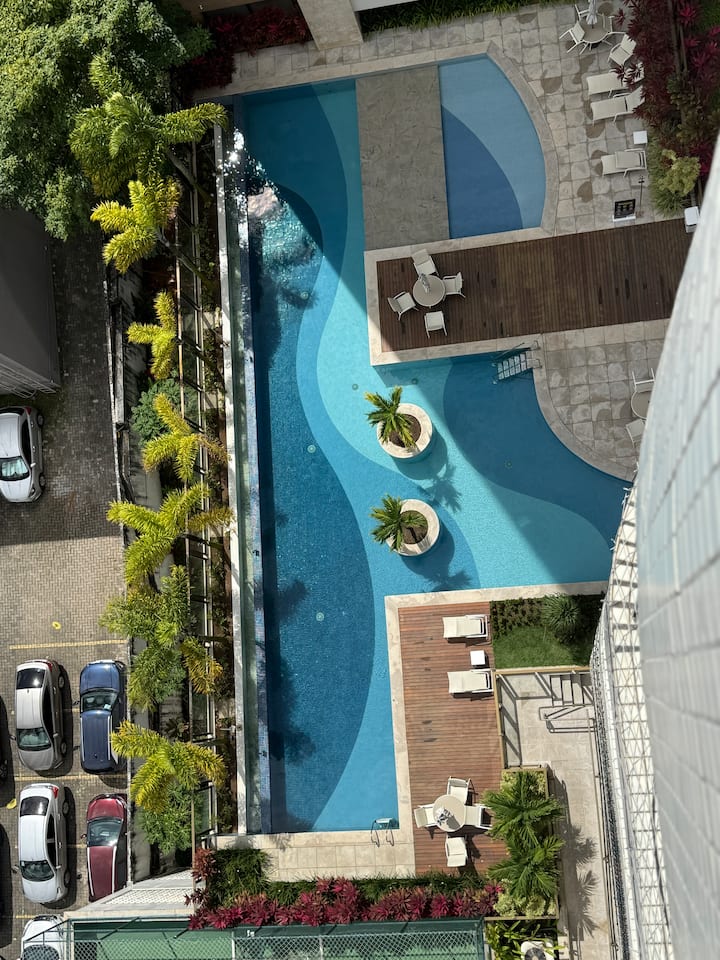 นี่เป็นหนึ่งในที่พักไม่กี่แห่งของย่านนี้ที่มีสระว่ายน้ำ