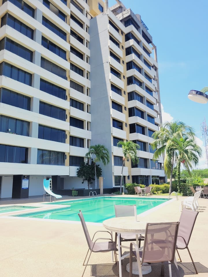 นี่เป็นหนึ่งในที่พักไม่กี่แห่งของย่านนี้ที่มีสระว่ายน้ำ