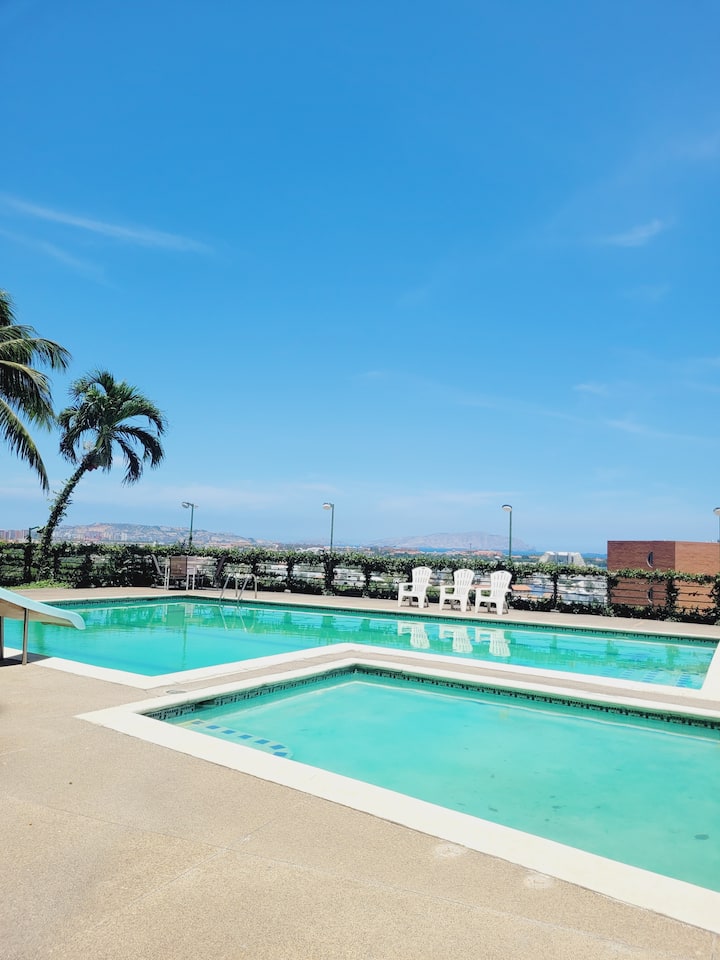 อพาร์ทเมนท์ที่อบอุ่นพร้อมวิวทะเลที่งดงาม