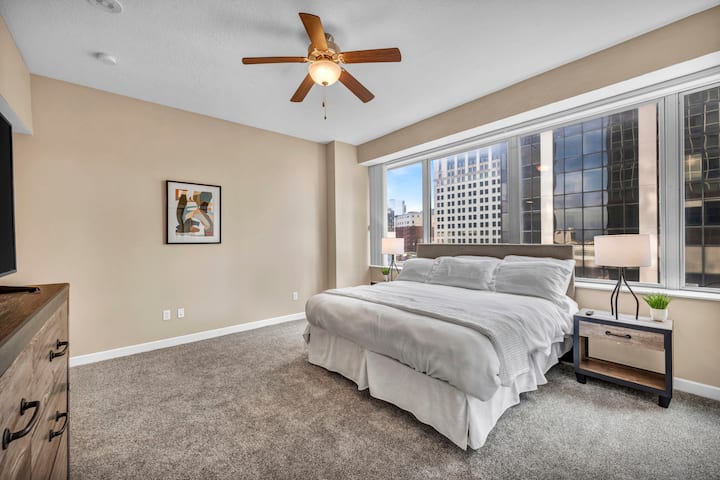 เข้าพักในหนึ่งในที่พักหรูระดับท็อปของคลีฟแลนด์ คอนโดที่สร้างขึ้นเพื่อผู้เข้าพักที่ให้ความสำคัญกับความสะดวกสบาย ด้วยคะแนนการเดินเกือบ 100/100 คุณจะอยู่ห่างจากร้านอาหาร ความบันเทิง และสถานที่ท่องเที่ยวที่ดีที่สุดของเมืองเพียงไม่กี่ก้าว จากนั้นก็กลับไปพักผ่อนในสไตล์ส่วนตัว