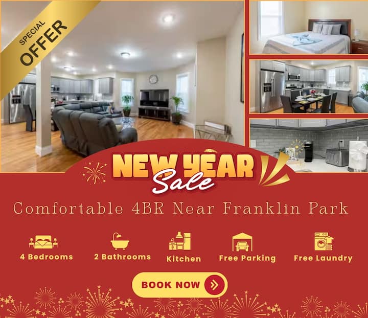 ที่พักสำหรับครอบครัวขนาดใหญ่ 4 ห้องนอนอยู่ใกล้กับสวนสาธารณะแฟรงคลินและสวนสัตว์ อพาร์ทเมนท์ดอร์เชสเตอร์ที่ทันสมัยแห่งนี้รองรับได้ 12 คนขึ้นไปและเหมาะสำหรับกลุ่มที่ต้องการพักผ่อนอย่างเงียบสงบพร้อมการเข้าถึงเมืองได้ง่าย เพลิดเพลินกับห้องน้ำเต็มรูปแบบ 2 ห้อง ห้องครัวเต็มรูปแบบ Wi-Fi ความเร็วสูง และเครื่องปรับอากาศ ตั้งอยู่ในย่านที่เงียบสงบใกล้สายแดง T คุณอยู่ห่างจากตัวเมืองบอสตัน เอเมอรัลด์เน็คเลส และสนามบินโลแกนเพียงไม่กี่นาที ฐานบอสตันอันสงบของคุณรอคุณอยู่