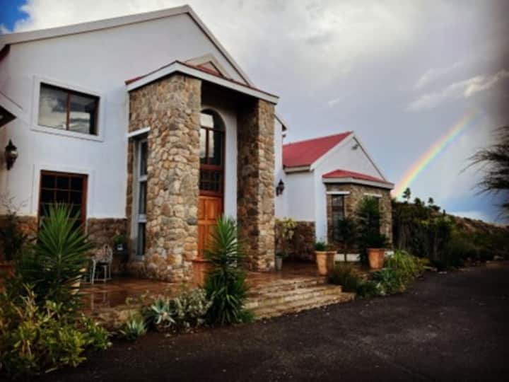 คฤหาสน์ซึ่งเป็นงานศิลปะที่สวยงามตั้งอยู่ในเทือกเขาวิทเทอเบิร์ก ทำงานแบบออฟกริดโดยใช้น้ำจากบ่อเจาะและพลังงานแสงอาทิตย์ของตัวเอง ภายในห้องนอนหลักทั้งสองห้องมีเตาไม้เพื่อความอบอุ่นในช่วงเดือนที่อากาศหนาวกว่านี้ ห้องนอนที่ 3 อยู่บนชั้น 2 ติดกับห้องหนังสือที่มีเตาผิงและระเบียงส่วนตัวที่มองเห็นสวน สำหรับครอบครัว มีห้องสำหรับครอบครัวโดยเฉพาะที่มีห้องนอนสองห้องติดกัน แต่ละห้องมีห้องน้ำในตัว บ้านหลังนี้ยังมีห้องครัวส่วนกลางที่มีอุปกรณ์ครบครัน พื้นที่รับประทานอาหารแบบไม่เป็นทางการพร้อมบาร์บีคิวในร่ม และพื้นที่รับประทานอาหารและเลานจ์ที่เป็นทางการมากขึ้น ด้านนอกมีเฉลียงที่มีบาร์บีคิวพื้นที่นั่งเล่นพื้นที่รับประทานอาหารห้องอาบแดดและสระว่ายน้ำ มีเตียงเด็กอ่อนให้บริการตามคำขอ