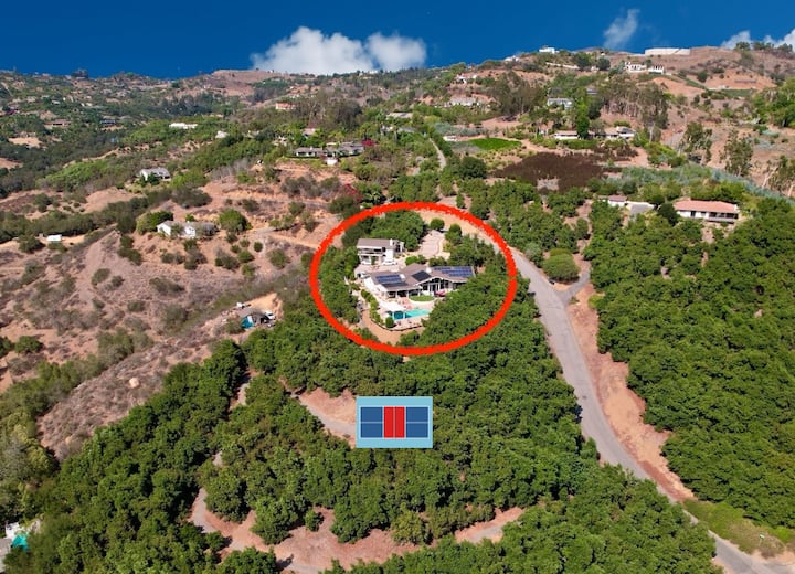 วิลล่าบนเนินเขาล้อมรอบด้วยสวนอะโวคาโดขนาด 5 เอเคอร์อันเขียวชอุ่ม เราขายอะโวคาโดในเชิงพาณิชย์ (เวลาเก็บเกี่ยวมักจะอยู่ในเดือนมิถุนายน) เพื่อช่วยจ่ายค่าน้ำ (ป่าละเมาะต้องการน้ำฝนเท่ากับ 5 นิ้วทุกเดือน) แต่คุณสามารถเดินเตร่ไปรอบๆป่าละเมาะและเลือกอะโวคาโดหรือส้มได้ (เรามีเกรปฟรุตสีขาวและสีชมพูแทนเจโลและ satsuma tangerines, kumquats, cara cara และ navel oranges, pomegranates, cherimoyas, แอปเปิ้ล, เสาวรสและถั่ว macademia)