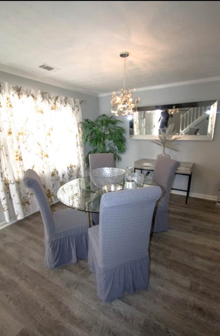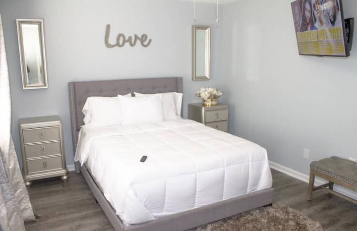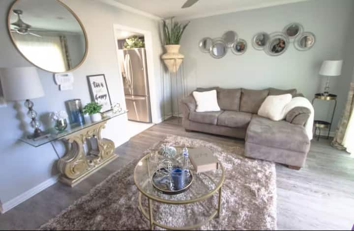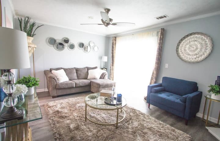 พักผ่อนกับเราที่บ้านขนาด 1,280 ตารางฟุตที่เพิ่งปรับปรุงใหม่ เหมาะสำหรับการพักผ่อนสั้นๆ การพักผ่อนกับครอบครัว และ/หรือการเดินทางเพื่อธุรกิจ