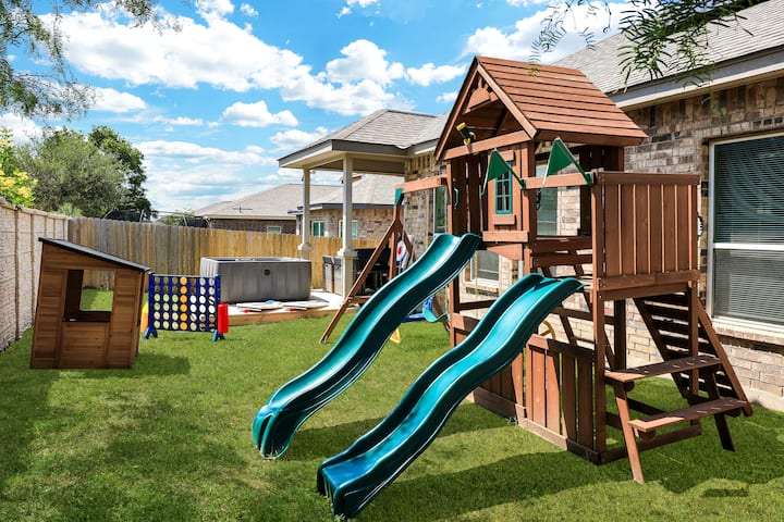 อ่างน้ำร้อนใกล้ซีเวิลด์ | บาร์บีคิวสนามเด็กเล่นชุดชิงช้า
