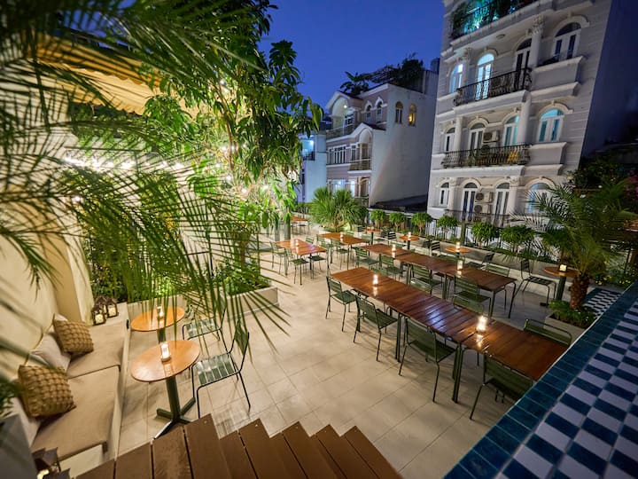 นี่เป็นหนึ่งในที่พักไม่กี่แห่งของย่านนี้ที่มีสระว่ายน้ำ