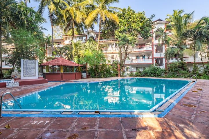 ล้อมรอบด้วยต้นไม้เขียวชอุ่มตื่นขึ้นมาในแต่ละเช้าเพื่อชมวิวอันน่าทึ่งของป่าและเนินเขา Arpora หรือดำน้ำตรงไปยังสระว่ายน้ำขนาดใหญ่ที่มีประกายระยิบระยับ
