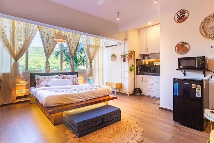 ยินดีต้อนรับสู่โบโฮบ้านพักตากอากาศสตูดิโอวิวป่าอันเงียบสงบของคุณ สถานที่พักผ่อนที่อบอุ่นและตกแต่งครบครันแห่งนี้ตั้งอยู่ในหมู่บ้าน Arpora ที่สวยงามได้รับการออกแบบมาเพื่อให้คุณได้พักผ่อนอย่างเงียบสงบในขณะที่ทำให้คุณใกล้ชิดกับชีวิตที่มีชีวิตชีวาของกัว ไม่ว่าคุณจะมาที่นี่เพื่อผ่อนคลายหรือสำรวจ Boho มีการผสมผสานที่สมบูรณ์แบบของความสะดวกสบายสไตล์และความสะดวกสบาย