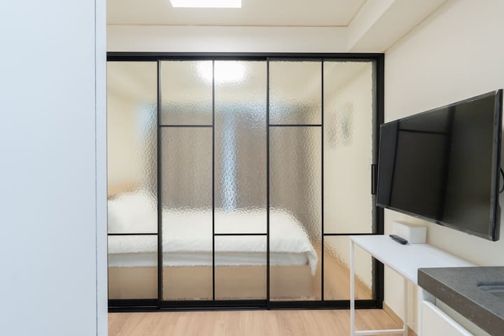 ✔ ห้องแยกพื้นที่ด้วยประตูกระจกทึบแสง
