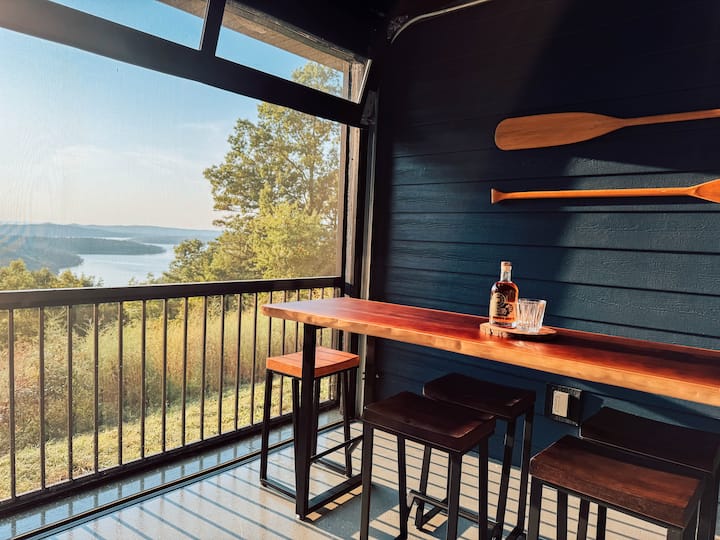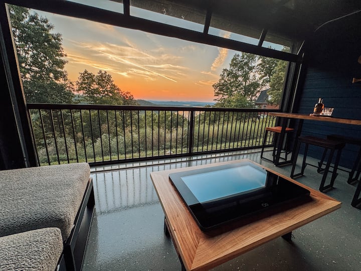 วิวพระอาทิตย์ตกดิน บ้านริมทะเลสาบพร้อมอ่างน้ำร้อนบนเทเบิลร็อค