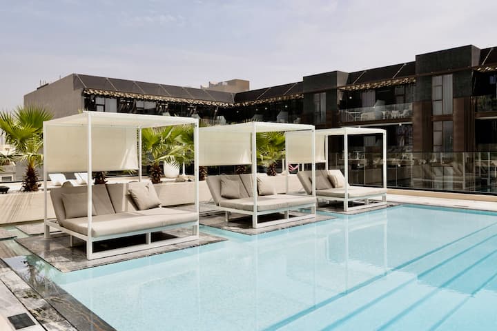 นี่เป็นหนึ่งในที่พักไม่กี่แห่งของย่านนี้ที่มีสระว่ายน้ำ