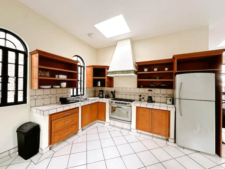 ทำอาหารได้อย่างง่ายดายในห้องครัวที่มีอุปกรณ์ครบครัน พร้อมเตา เตาอบ ตู้เย็น เครื่องชงกาแฟ เครื่องปั่น กาต้มน้ำ และเครื่องครัว ชั้นวางแบบเปิดสำหรับจัดเก็บอุปกรณ์รับประทานอาหารและเครื่องแก้วทั้งหมด ช่วยให้การเตรียมอาหารเป็นเรื่องง่ายและสะดวก ไม่ว่าจะเป็นมื้อเช้าหรือมื้อค่ำ