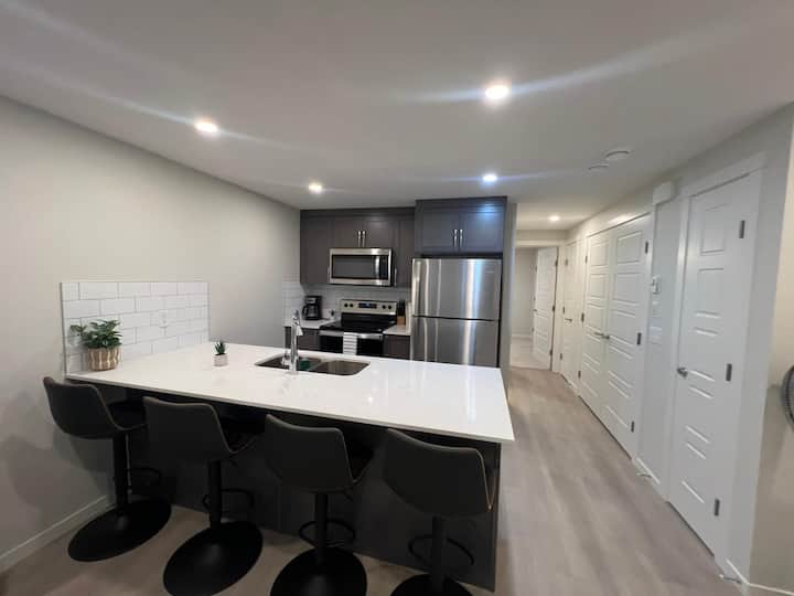 ผ่อนคลายในห้องสวีท 1 ห้องนอนที่ตกแต่งใหม่ของเรา โอเอซิสส่วนตัวของคุณในนอร์ทอีสต์คาลการี ต้อนรับการเข้าพักระยะยาว แต่ยังยืดหยุ่นสำหรับการพักผ่อนระยะสั้น เหมาะสำหรับนักเดินทางคนเดียว คู่รัก นักเดินทางเพื่อธุรกิจ หรือครอบครัวเล็กๆ คุณอยู่ห่างจากครอสไอรอนมิลส์ ดีร์ฟุตซิตี้เอาท์เล็ท และสนามบินวินนิเพกเพียง 10 นาที และห่างจากตัวเมือง 15 นาที เพลิดเพลินกับร้านกาแฟ ร้านเบเกอรี่ และร้านขายของชำที่อยู่ใกล้เคียง เดินเล่นไปตามเส้นทางโนสครีกหรือดีนเฮ้าส์ ชิมร้านเบียร์คราฟท์ท้องถิ่น หรือขึ้นรถเมล์ที่ด้านหน้า เข้าถึงสแตมปีดและแบนฟ์ได้ง่าย จองเลย
