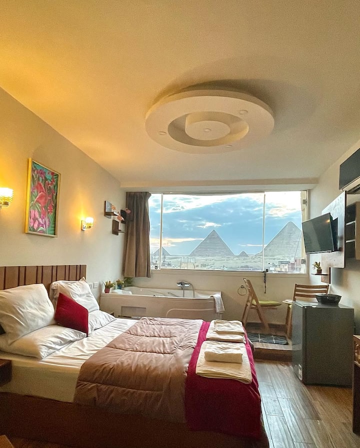 ห้องจากุซซี่และวิวพีระมิด + อาหารเช้าฟรี :)