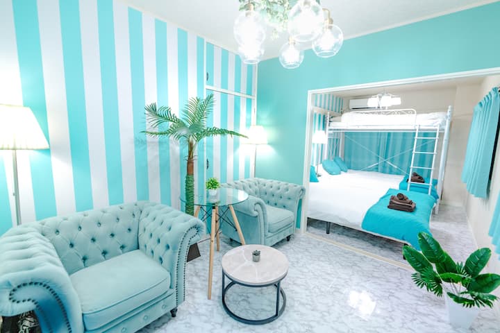 สูงสุด 9 คน/สถานีรถแท็กซี่อิเคบุคุ 3 นาที/สถานีคาโนะมาจิ 5 นาที/ห้อง Tiffany Blue yellow