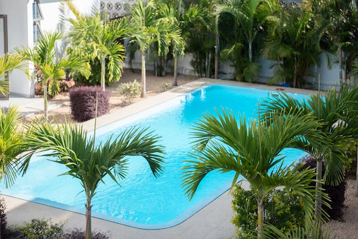 นี่เป็นหนึ่งในที่พักไม่กี่แห่งของย่านนี้ที่มีสระว่ายน้ำ