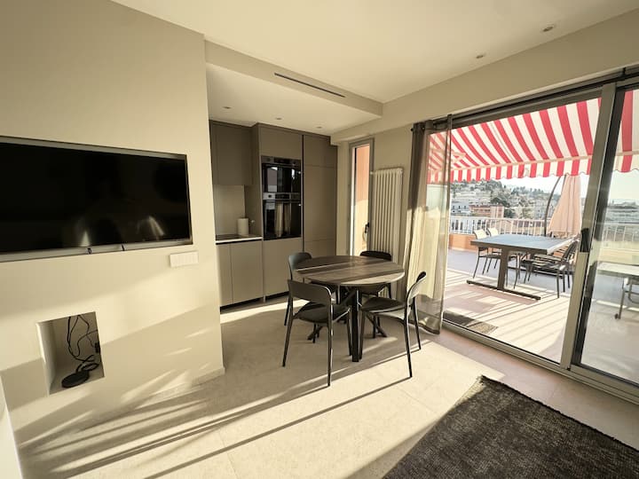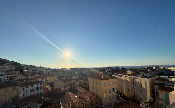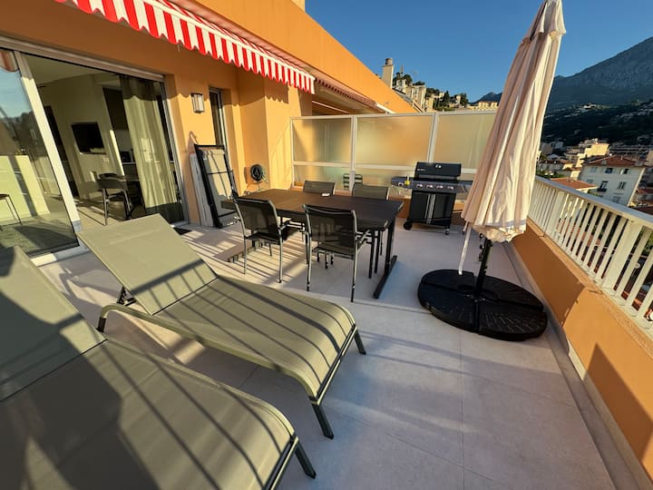 ชั้นบนสุดใจกลางเมืองเมอ็งตง วิวทะเล ที่จอดรถส่วนตัว