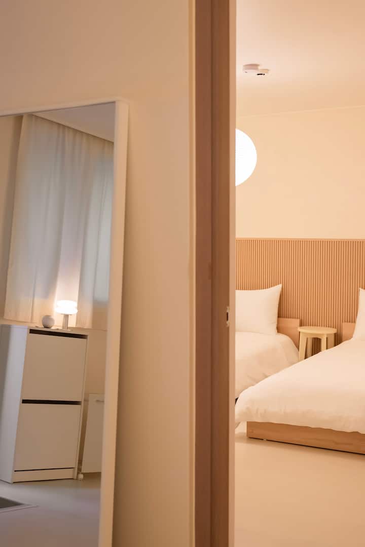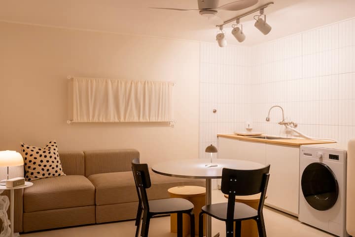 Beige Nook ตั้งอยู่ในซอยที่เงียบสงบระหว่างแฮบังชอนและฮวัมดง เป็นสถานที่พักผ่อนที่อบอุ่นเหมือนชื่อของที่พัก