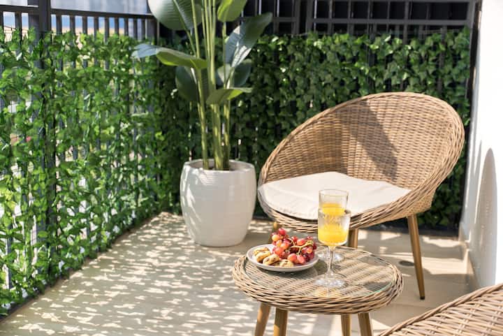 เพลิดเพลินกับวิวคลองที่เงียบสงบและผ่อนคลายในขณะที่ผ่อนคลายในพื้นที่กลางแจ้งส่วนตัวของคุณ สถานที่ที่สมบูรณ์แบบสำหรับเพลิดเพลินกับอาหารเช้าหรืออ่านหนังสือ ระเบียงให้บริการเกือบทั้งวันโดยไม่มีแสงแดดโดยตรงซึ่งช่วยให้คุณเพลิดเพลินกับเวลาบนระเบียง ระเบียงมีเฟอร์นิเจอร์กลางแจ้งระดับพรีเมียม