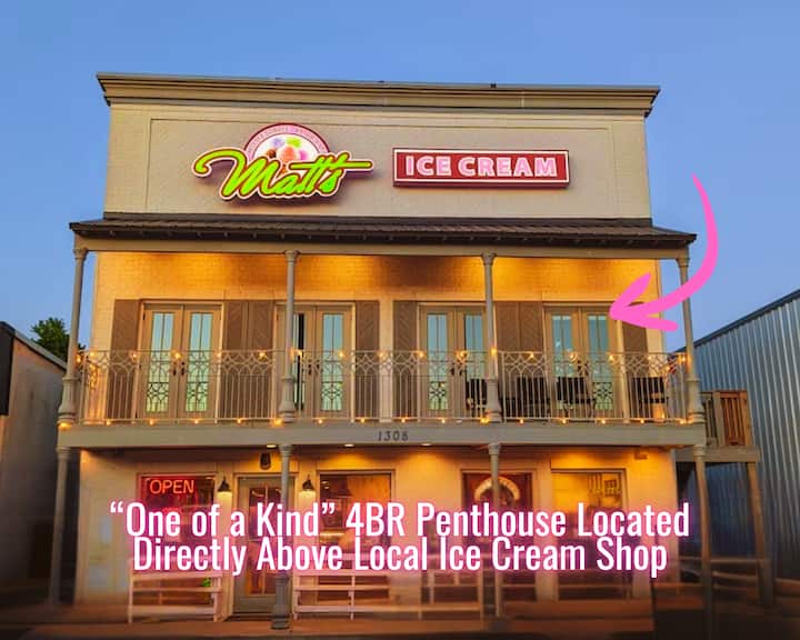 ☀ เพนท์เฮาส์ 4 ห้องนอนที่ไม่เหมือนใครเหนือร้านไอศกรีมของแมทในใจกลางกัลฟ์ชอร์ส รัฐแอละแบมา