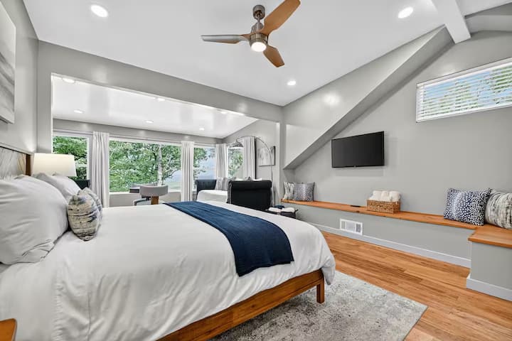 ★ ห้องนอน 2 บนชั้นหลักมีเตียงคิงไซส์พร้อมห้องน้ำในตัวพร้อมอ่างล้างหน้า 2 อ่างพร้อมพื้นที่เคาน์เตอร์และฝักบัวอาบน้ำแบบวอล์คอิน ผู้เข้าพักสามารถก้าวออกไปยังดาดฟ้าชั้นหลักได้โดยตรงจากห้องนอนนี้
