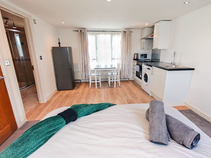 แฟลตสตูดิโอสบาย ๆ พร้อมห้องครัวและห้องน้ำส่วนตัว
