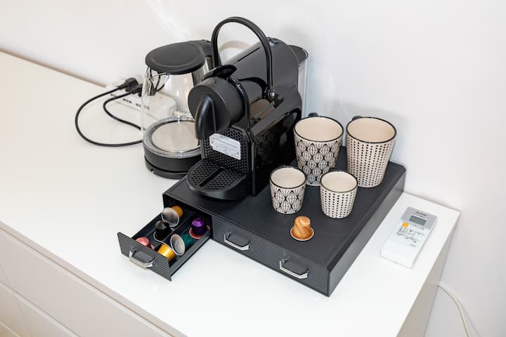 - ห้องครัวเต็มรูปแบบพร้อมเตาแม่เหล็กไฟฟ้า หม้อ จาน จาน แก้ว และทุกอย่างที่คุณต้องการในการทำอาหารได้อย่างอิสระ