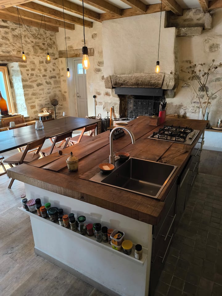 - ห้องครัวที่ยอดเยี่ยมเป็นหัวใจของบ้าน เปิดออกสู่สวน มีเตาผิงที่สวยงาม เคาน์เตอร์ไม้ดิบและทุกอย่างที่คุณต้องการเพื่อปรุงอาหารเบรอตันดีๆ (หรือเพียงแค่อุ่นแพนเค้ก เราไม่ตัดสิน)
