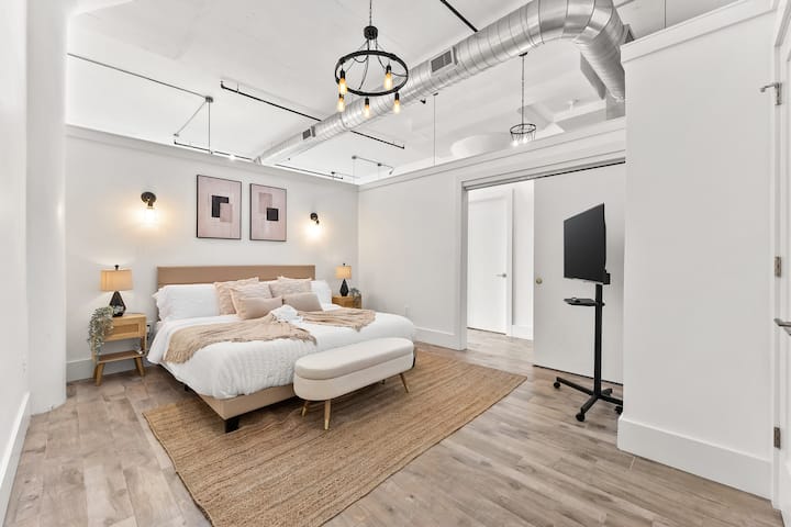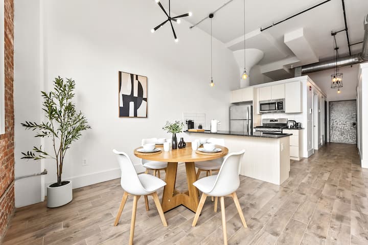 ห้องลอฟท์ชั้น 1 ที่สว่างไสวแห่งนี้ผสมผสานสไตล์อุตสาหกรรมเข้ากับความสะดวกสบายที่ทันสมัย หน้าต่างบานใหญ่ช่วยให้แสงธรรมชาติเข้ามาได้ดี และการวางแปลนแบบเปิดโล่งเหมาะสำหรับการเข้าพักระยะยาว ที่พักประกอบด้วย 1 ห้องนอน 1 ห้องน้ำพื้นที่นั่งเล่น/รับประทานอาหารห้องครัวเต็มรูปแบบพื้นที่ทำงานและบริการซักรีดในห้องพักสำหรับผู้เข้าพักสูงสุด 4 คน