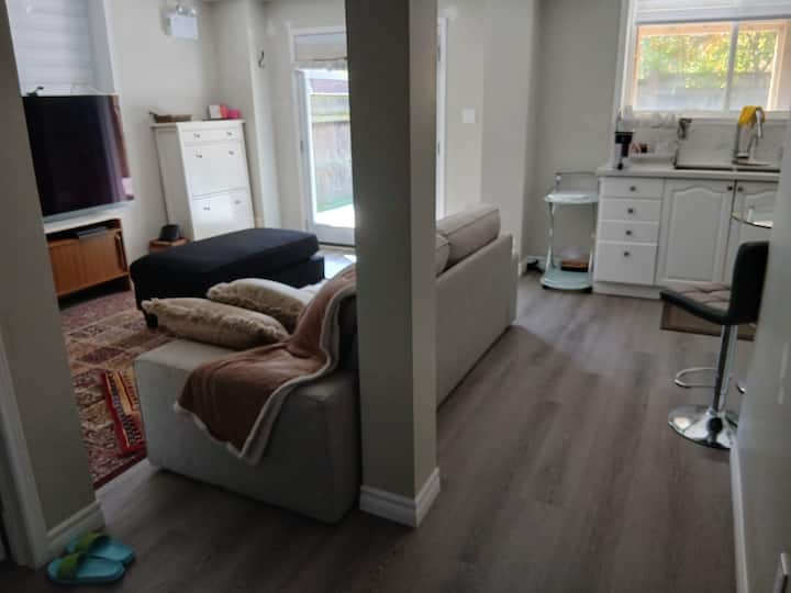 ที่พักผ่อนที่อบอุ่น สว่าง 1BR เดินออกไปพร้อมระเบียงและที่จอดรถ