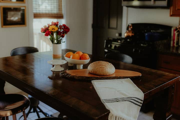 ➤ห้องครัว: พาคู่สนทนารับประทานอาหารค่ำในห้องครัวที่มีโต๊ะผับไม้วอลนัทแบบไลฟ์เอดจ์และสิ่งของจำเป็นทั้งหมดที่คุณต้องการสำหรับการเข้าพัก