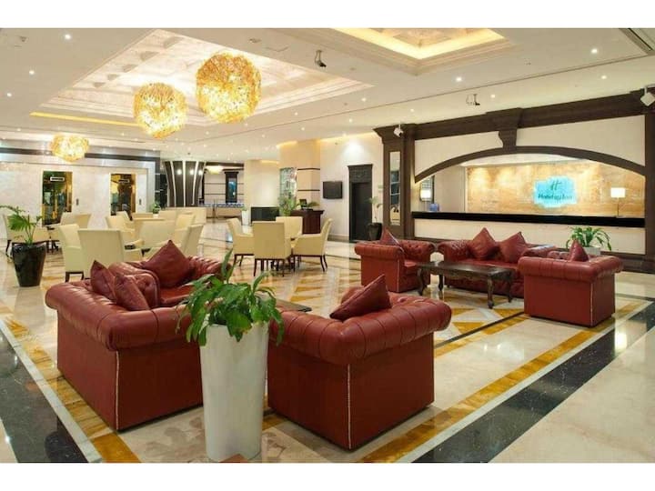 สัมผัสความสะดวกสบายทันสมัยที่โรงแรมฮอลิเดย์ อินเตอร์เนชั่นแนล ตั้งอยู่ในทำเลที่เหมาะสมในย่านเอ็มบาสซีของดูไบ ผ่อนคลายในห้องพักที่กว้างขวางพร้อมทีวีจอแบน โต๊ะทำงาน เตารีด และห้องน้ำส่วนตัว ลงไปแช่น้ำในสระว่ายน้ำบนดาดฟ้าหรือเพลิดเพลินกับอาหารที่ร้านอาหารอันวาร์ที่เปิด 24 ชั่วโมง ผู้เข้าพักยังสามารถผ่อนคลายที่ผับทูกินีเพื่อรับประสบการณ์แบบอังกฤษคลาสสิก โรงแรมอยู่ห่างจากห้างสรรพสินค้าบูร์จูแมนเพียงไม่กี่นาที และอยู่ห่างจากสนามบินนานาชาติดูไบเพียง 15 นาที โดยมีบริการรถรับส่งฟรีไปยังชายหาด