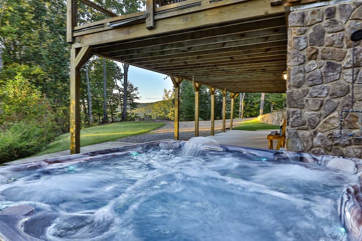 ป็อปส์พีค | 40 เอเคอร์ อ่างน้ำร้อน ห้องเล่นเกม และเตาผิง + วิวภูเขาที่สวยงาม