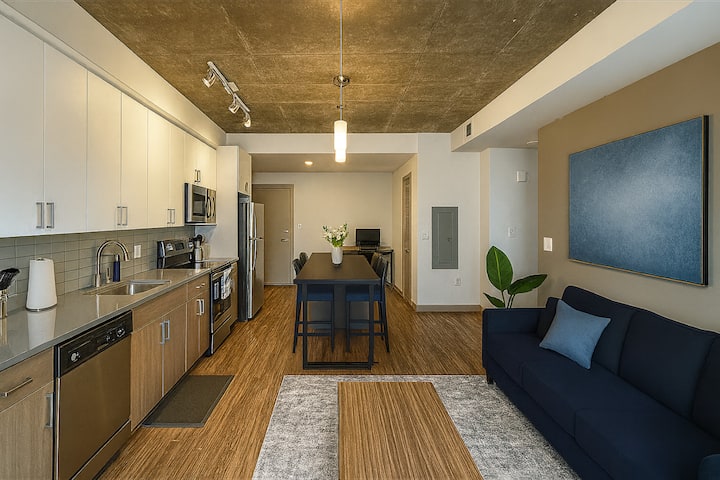 ผ่อนคลายในคอนโด 2 ห้องนอนที่เก๋ไก๋ใจกลางเมืองเบอร์มิงแฮม หน้าต่างสูงจากพื้นจรดเพดานให้แสงธรรมชาติเข้ามาในที่พักและมองเห็นวิวเมืองที่กว้างไกล พื้นที่นั่งเล่นแบบเปิดโล่งชวนให้คุณผ่อนคลายด้วยที่นั่งหรูหรา สมาร์ททีวี และห้องครัวที่มีอุปกรณ์ครบครัน ห้องนอนแต่ละห้องให้ความรู้สึกสบาย ๆ ในขณะที่ห้องน้ำที่ทันสมัยเพิ่มความสะดวกสบายเหมือนสปา ด้วย Wi-Fi ความเร็วสูงและร้านอาหารชั้นนำ แหล่งช้อปปิ้ง และสถานที่ท่องเที่ยวที่อยู่ห่างออกไปเพียงไม่กี่ก้าว การพักผ่อนในเมืองที่สมบูรณ์แบบของคุณกำลังรอคุณอยู่