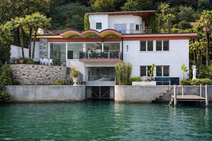 วิลล่าริมทะเลสุดพิเศษพร้อมสะพานและเรือบนทะเลสาบลูกาโน
