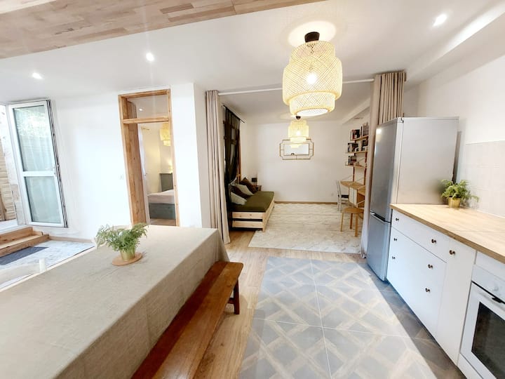 ห้องพักขนาดใหญ่ 2 ห้องนอนที่ได้รับการปรับปรุงใหม่ ใจกลางเมือง มีระเบียง