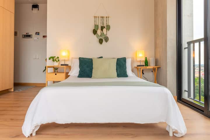 ตื่นขึ้นมาพบกับวิวชั้น 15 ที่สวยงามของย่านเซนโตร ฮิสโตริโกจากสตูดิโอใหม่เอี่ยมในเซนโตร ฮิสโตริโก ออกแบบมาเพื่อความสะดวกสบายและใช้งานได้จริง มีการตกแต่งที่ทันสมัยและแสงธรรมชาติสว่างมาก ก้าวออกไปข้างนอกแล้วคุณจะอยู่ในเซนโตร ฮิสโตริโก และอยู่ไม่ไกลจากเรฟอร์มาและพิพิธภัณฑ์ระดับโลก โรมา คอนเดซ่า และฮัวเรซอยู่ไม่ไกล ทำให้ที่นี่เป็นฐานที่สมบูรณ์แบบในการสำรวจ ทำงาน หรือพักผ่อนขณะสัมผัสประสบการณ์ที่ดีที่สุดของเม็กซิโกซิตี