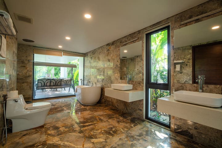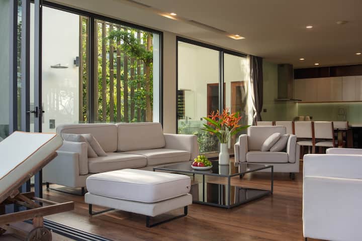 วิลล่าสไตล์โมเดิร์น 2 ชั้นตั้งอยู่บนที่ดินขนาด 400 ตร.ม. มีสระว่ายน้ำส่วนตัวที่สร้างตามมาตรฐานรีสอร์ทระดับ 5 ดาวและห้องนอนขนาดใหญ่ 3 ห้องพร้อมอุปกรณ์ครบครัน
