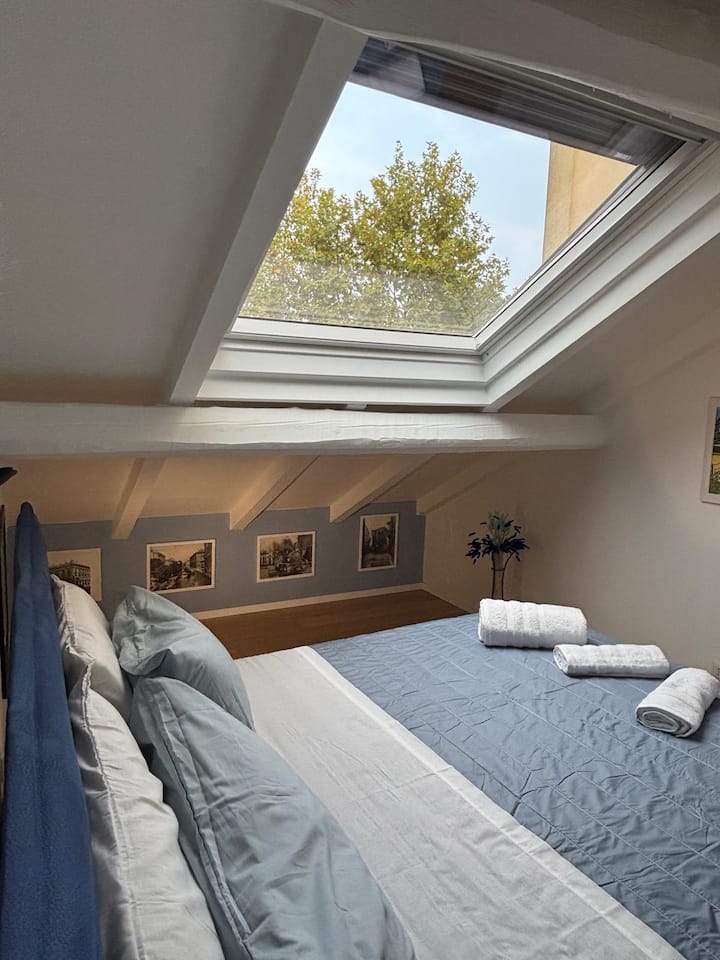 ห้องใต้หลังคาเล็กๆ สีฟ้า