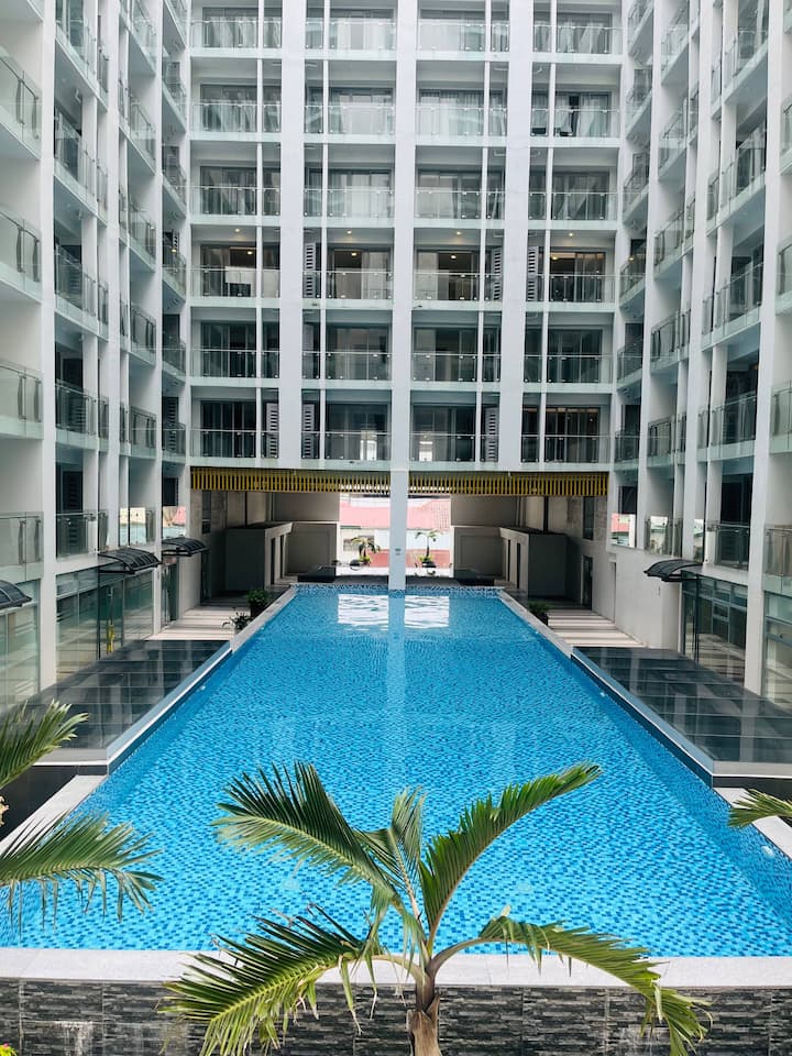 นี่เป็นหนึ่งในที่พักไม่กี่แห่งของย่านนี้ที่มีสระว่ายน้ำ